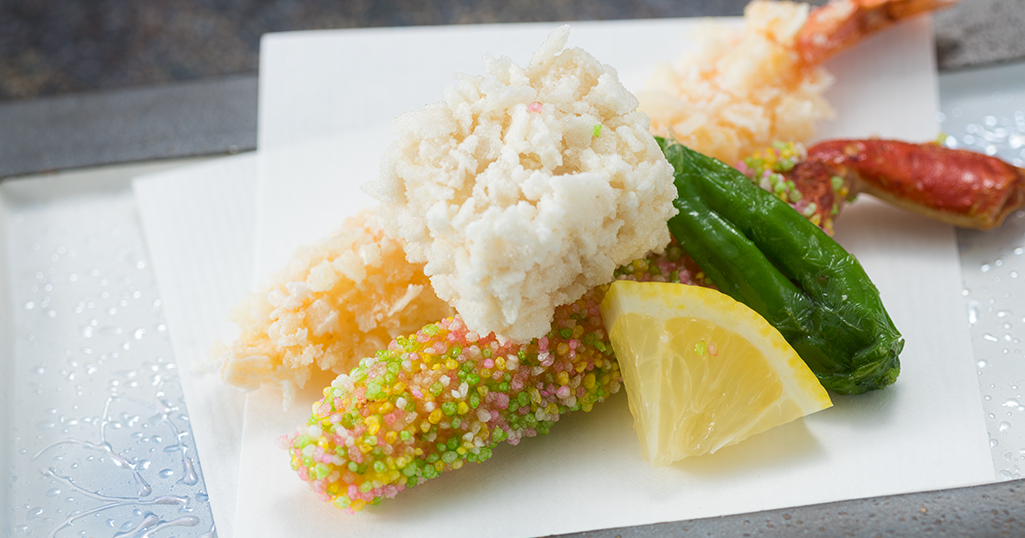 - (付出し・魚介類・牛・豚・つくね・うどん・フルーツ)